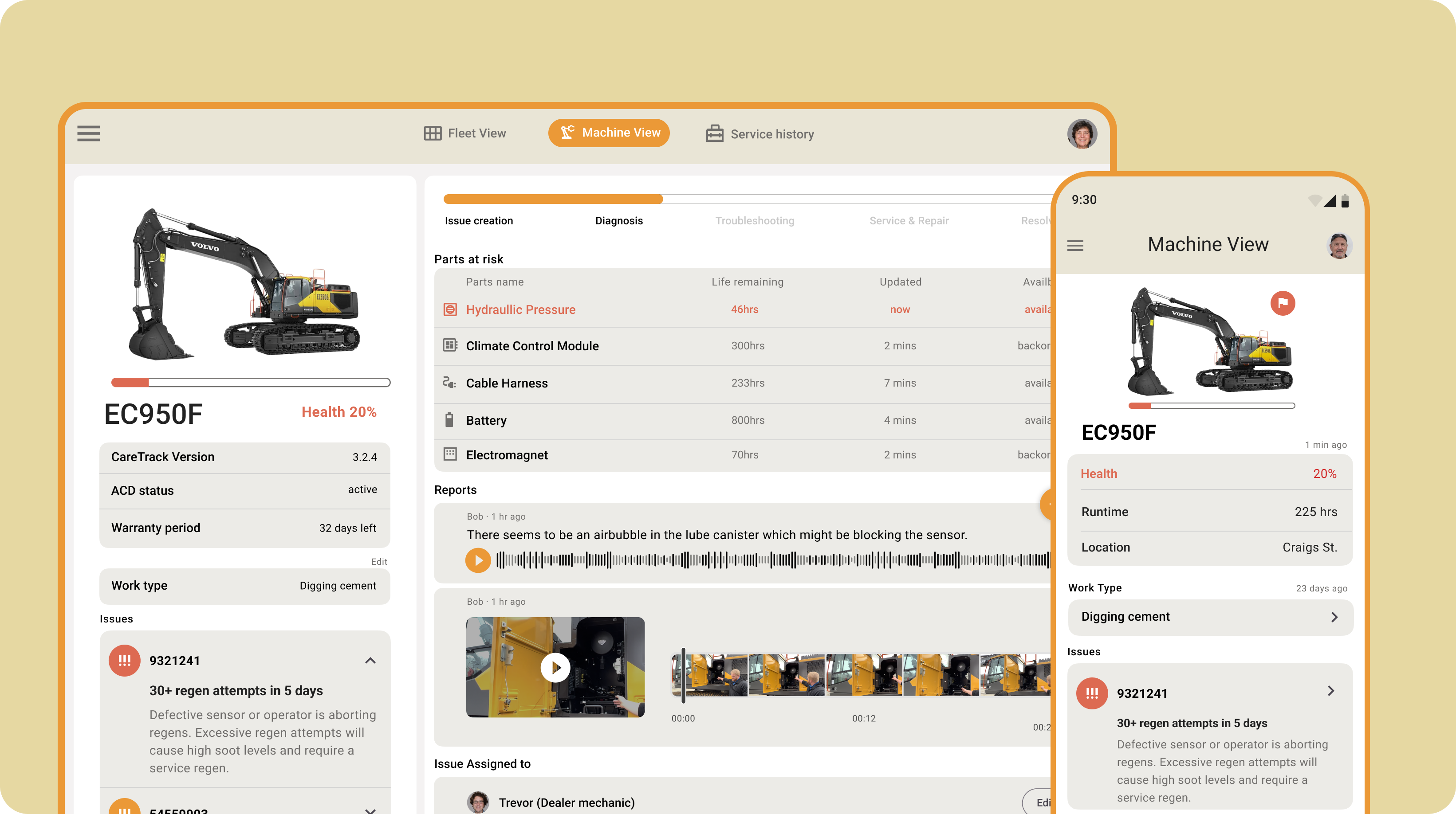 Ascend helps the dealer in giving a shared view of the issue as it happens on-site and reports that the operator or onsite technician would have recorded as soon as the trouble code showed up. The dealer also gets access to possible parts at risk for the issue that came on the machine.